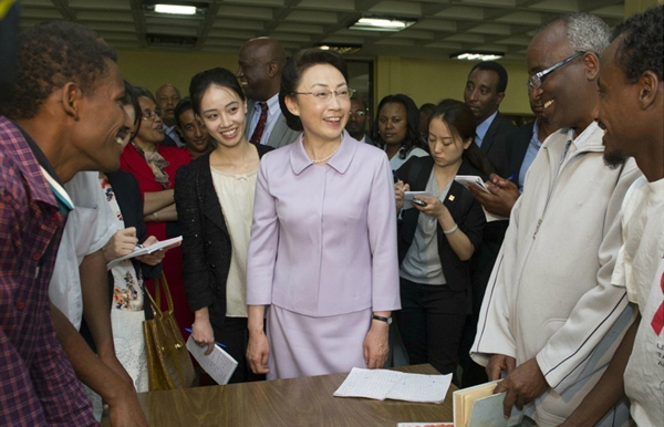 ????新華網(wǎng)北京5月6日電 據(jù)新華社“新國(guó)際”微博報(bào)道,李克強(qiáng)總理夫人程虹5日在埃塞俄比亞總理夫人羅曼·塔斯法耶的陪同下參觀了亞的斯亞貝巴大學(xué),觀摩漢語授課,與學(xué)生們交流,觀看學(xué)生們的中國(guó)文化才藝展示,還捐贈(zèng)了書籍、計(jì)算機(jī)等物品。程虹說,你們是文化的紐帶,感謝你們對(duì)中國(guó)人民的情誼。你們對(duì)中國(guó)文化的熱愛感動(dòng)了我,也會(huì)感動(dòng)中國(guó)人民。