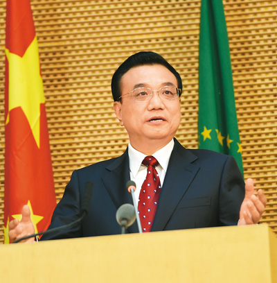 本報亞的斯亞貝巴5月5日電 (記者吳樂珺、倪濤)國務(wù)院總理李克強當?shù)貢r間5日在位于亞的斯亞貝巴的非洲聯(lián)盟總部發(fā)表題為《開創(chuàng)中非合作更加美好的未來》的演講。