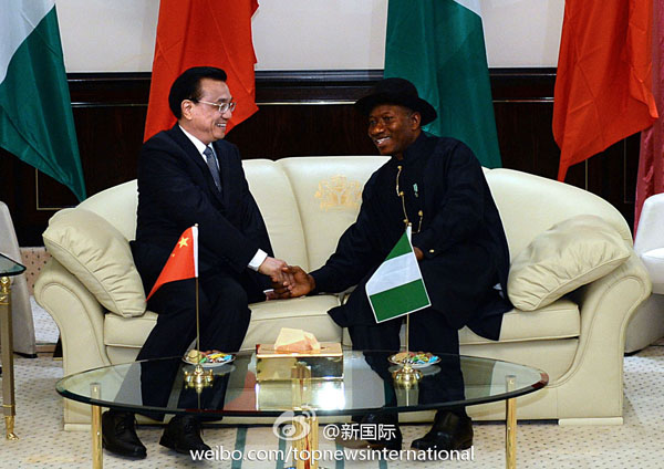 ????新華網北京5月8日電 據(jù)新華社“新國際”微博報道,尼日利亞首都阿布賈安全形勢嚴峻,人心惶惶……值此時刻,李克強總理如期到訪,未有絲毫猶豫,體現(xiàn)中國領導人對推動中非合作升級的重視和誠意;與喬納森總統(tǒng)會談時,李克強還明確提出,希望尼加強對中國公民的保護,牽掛之情,溢于言表。