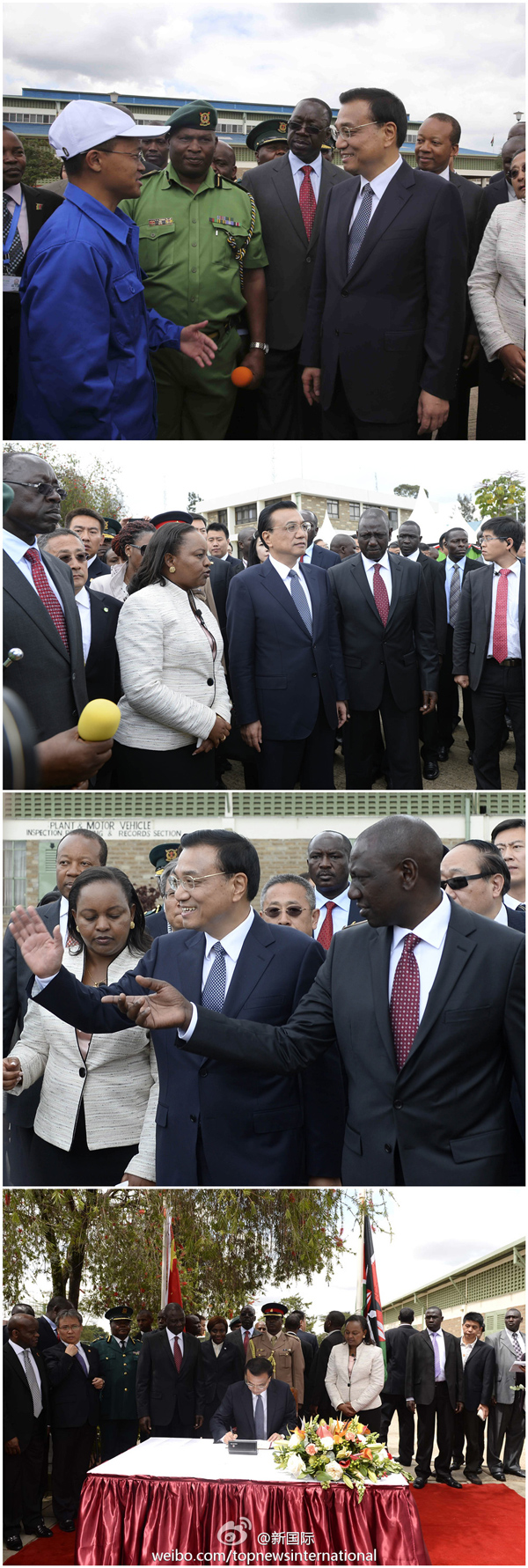 ????新華網北京5月11日電 據新華社“新國際”微博報道,李克強總理11日在肯副總統(tǒng)魯托陪同下參觀國家青年服務隊。這是該國青年培訓機構,2007年以來中方向其提供技術培訓和設備,隊員全部實現(xiàn)就業(yè)。李克強贊許說,這創(chuàng)造了雙方合作的新模式,可在非洲推廣。他還欣然留言:青年就業(yè)是國家的希望。?