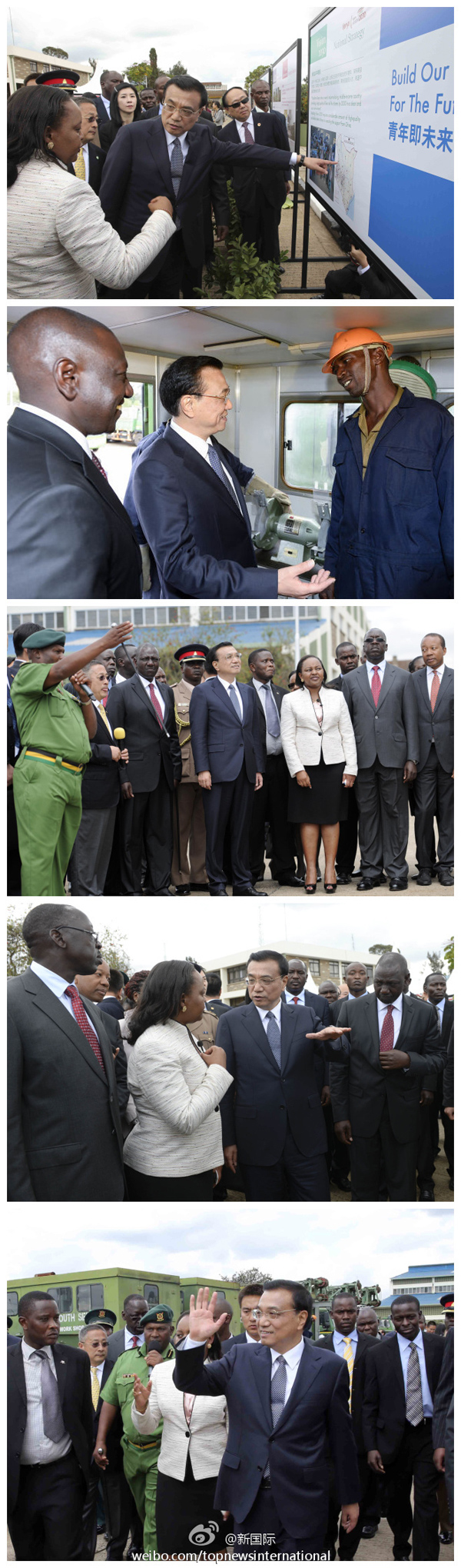 ????新華網(wǎng)北京5月11日電 據(jù)新華社“新國際”微博報道,李克強總理11日在肯副總統(tǒng)魯托陪同下到國家青年服務隊參觀。這里供學員實習的鉆井、起重、消防等裝備不少來自中國。李克強攀上一輛移動維修車查看并詢問維護等服務情況。他說,要用好中國裝備和技術優(yōu)勢,幫助非洲青年提升職業(yè)技能,促進當?shù)鼐蜆I(yè)。?