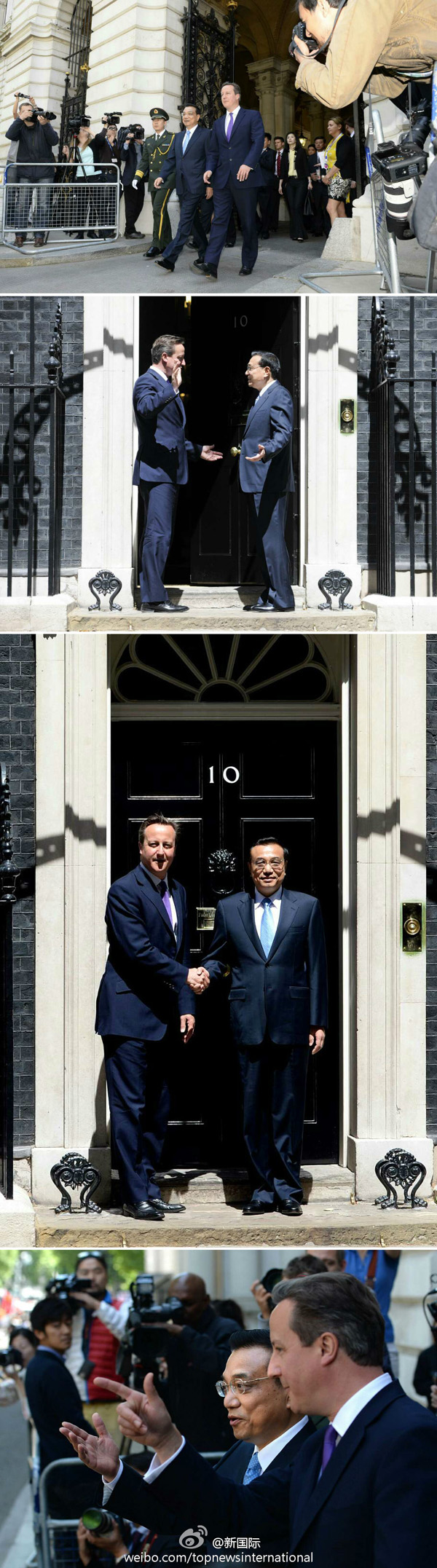 新華網(wǎng)北京6月17日電 據(jù)新華社“新國際”微博報道,17日,英國首相府所在的唐寧街附近五星紅旗飄揚,卡梅倫為到訪的李克強(qiáng)總理舉行隆重歡迎儀式。隨后,兩位領(lǐng)導(dǎo)人步行來到首相官邸。面對中外記者的鏡頭,李克強(qiáng)與卡梅倫握手合影,愉快交談。在首相府一層內(nèi)閣會議室內(nèi),兩位領(lǐng)導(dǎo)人就雙邊關(guān)系和共同關(guān)心的問題舉行會談。