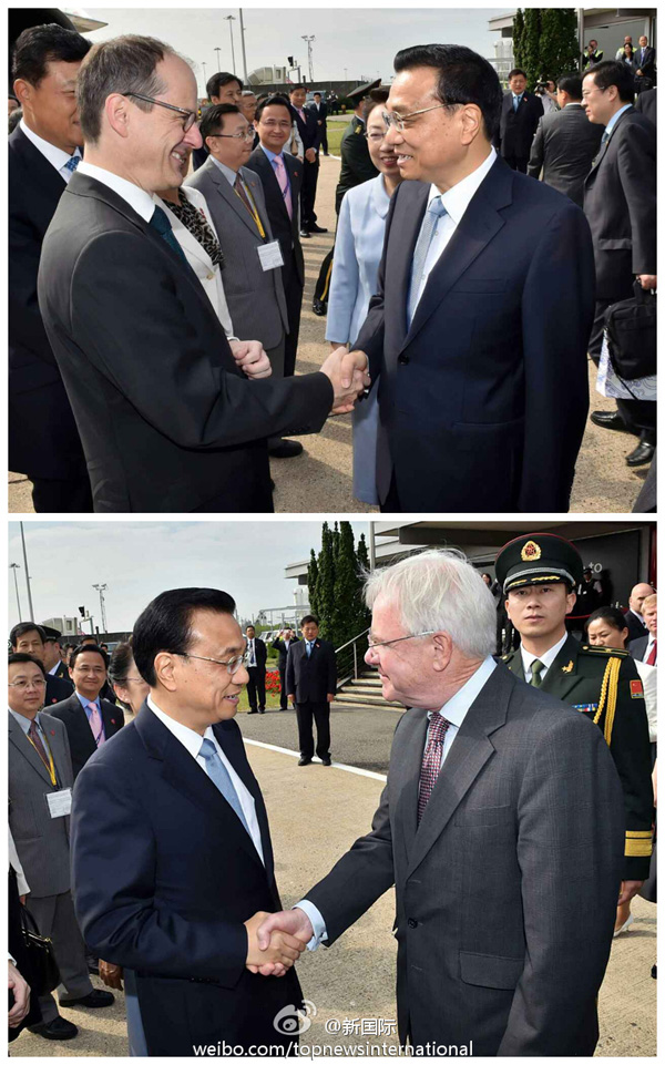 新華網(wǎng)北京6月20日電 據(jù)新華社“新國際”微博報(bào)道,李克強(qiáng)總理在圓滿結(jié)束對英國的正式訪問并舉行中英總理年度會(huì)晤后,于當(dāng)?shù)貢r(shí)間19日上午乘專機(jī)離開倫敦,赴希臘開始正式訪問。英國政府高級官員和中國駐英國大使劉曉明等到機(jī)場送行。