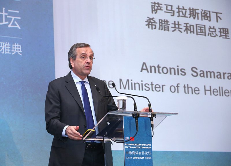 ??? 希臘總理薩馬拉斯20日在中希海洋合作論壇上說,李克強總理是我的朋友。我們彼此可以直視對方眼睛,因為我們相互信任,這種個人信任也代表了希臘人民對中國人民的感情。我們不會忘記,中國在希臘債務危機最困難時期無私地跟我們站在一起。