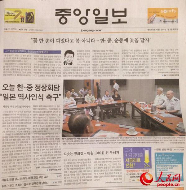 ??? 韓國《中央日報》在頭版頭條位置刊發(fā)習(xí)近平主席署名文章《風(fēng)好正揚(yáng)帆》 金慧廷 攝