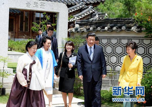 7月4日,國家主席習(xí)近平在首爾再次會見韓國總統(tǒng)樸槿惠。 新華社記者饒愛民 攝