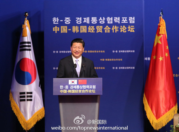????新華網(wǎng)北京7月4日電 據(jù)新華社“新國際”微博報道,習(xí)近平指出,中國對韓投資尚處于起步,“小荷才露尖尖角”,但只要精耕細作,一定會蓮香十里飄。中國人民銀行和韓國銀行簽訂了在首爾建立人民幣清算安排的備忘錄,確定中國交通銀行擔(dān)任首爾人民幣清算銀行,這將有利于促進中韓兩國貿(mào)易、投資自由化便利化。
