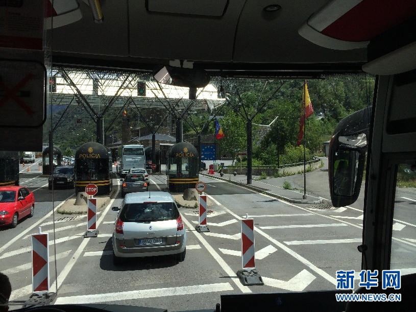 ????大巴車在西班牙和安道爾兩國(guó)邊境處等待進(jìn)入安道爾。(周喆 攝)