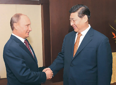 習(xí)近平表示,下一步,中俄雙方要繼續(xù)加大相互政治支持,提高合作深度和廣度,更多開展戰(zhàn)略性大項(xiàng)目聯(lián)合研究開發(fā)、聯(lián)合推廣應(yīng)用、聯(lián)合生產(chǎn)制造,在軍事、安全等領(lǐng)域多采取務(wù)實(shí)聯(lián)合行動(dòng),在人文領(lǐng)域鼓勵(lì)和支持聯(lián)合辦學(xué)、共同發(fā)展文化。雙方要在國際事務(wù)中開展更多共同行動(dòng),攜手推動(dòng)金磚國家合作,提升話語權(quán)和影響力,完善全球治理,推動(dòng)國際關(guān)系民主化,促進(jìn)世界和平與發(fā)展。