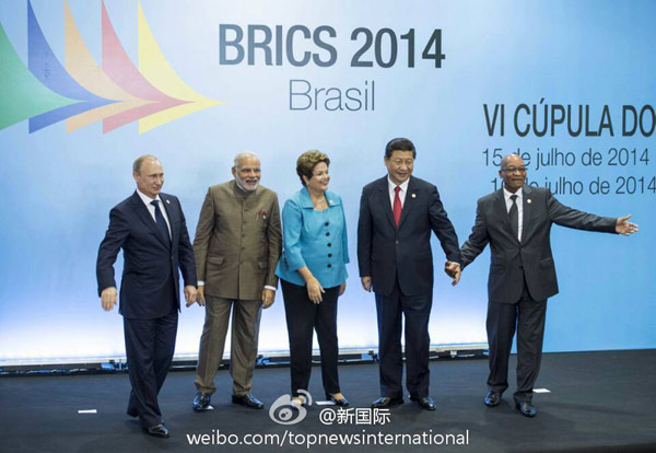 ???? 新華網(wǎng)北京7月16日電 據(jù)新華社“新國際”微博報道,習近平在出席金磚國家領(lǐng)導人第六次會晤時提出,要發(fā)揚金磚國家獨特的“開放、包容、合作、共贏”的合作伙伴精神,要堅定不移推動經(jīng)濟可持續(xù)增長,堅定不移形成全方位經(jīng)濟合作,堅定不移塑造有利外部發(fā)展環(huán)境,堅定不移提高道義感召力。