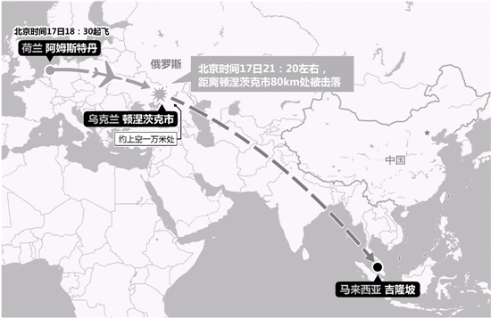 俄羅斯民航部門消息人士告訴路透社記者,這架馬來(lái)西亞客機(jī)沒有在預(yù)定時(shí)間進(jìn)入俄羅斯領(lǐng)空,墜毀于烏克蘭東部地區(qū)。