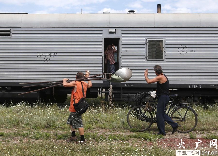 當(dāng)?shù)貢r間2014年7月20日,烏克蘭頓涅茨克Torez,馬航墜機遇難乘客遺體被裝上列車冷藏車廂將被運走。載有部分遺體的火車從距空難現(xiàn)場不遠的烏克蘭托列茲市出發(fā),前往頓涅茨克市?;疖囯x站前,身處空難現(xiàn)場的歐洲安全與合作組織(歐安組織)代表檢查了運載遺體的5節(jié)冷藏車廂。