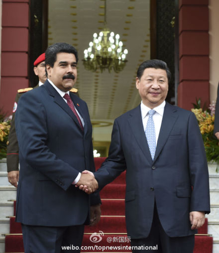 ????新華網(wǎng)北京7月21日電 據(jù)新華社“新國際”微博報道,習(xí)近平20日同馬杜羅總統(tǒng)會談時說,我們要加強頂層設(shè)計,以金融和投資為引擎,以能源合作為主軸,基礎(chǔ)設(shè)施建設(shè)、農(nóng)業(yè)、礦業(yè)、科技合作等多個輪子一起轉(zhuǎn),促進(jìn)中委合作全方位發(fā)展。(李學(xué)仁攝)