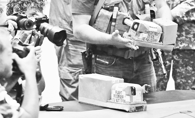 圖為7月22日凌晨,在烏克蘭頓涅茨克州,媒體記者在移交儀式上拍攝馬航MH17航班客機黑匣子。新華社發(fā)