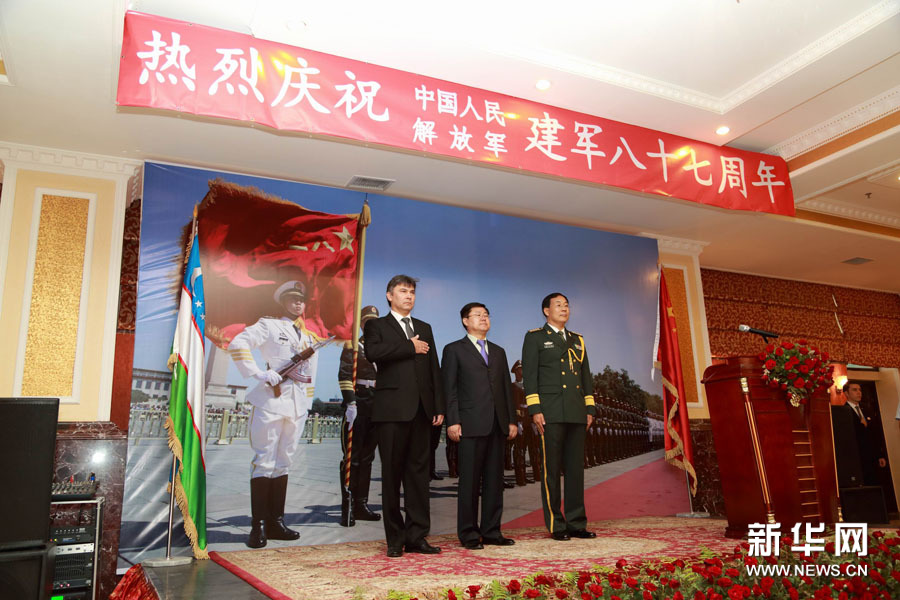 ????中國駐烏茲別克斯坦使館舉行建軍節(jié)招待會 (新華社發(fā) 記者沙達提)