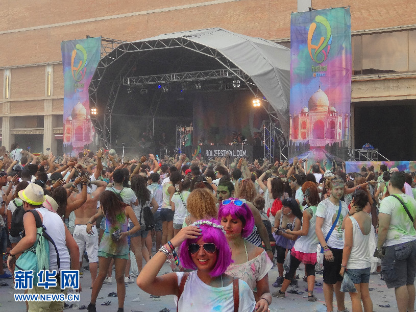 “2014巴塞羅那霍利節(jié)”現場的年輕人 (新華社記者周喆拍攝)