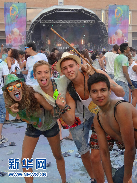 “2014巴塞羅那霍利節(jié)”現(xiàn)場(chǎng)的年輕人 (新華社記者周喆拍攝)