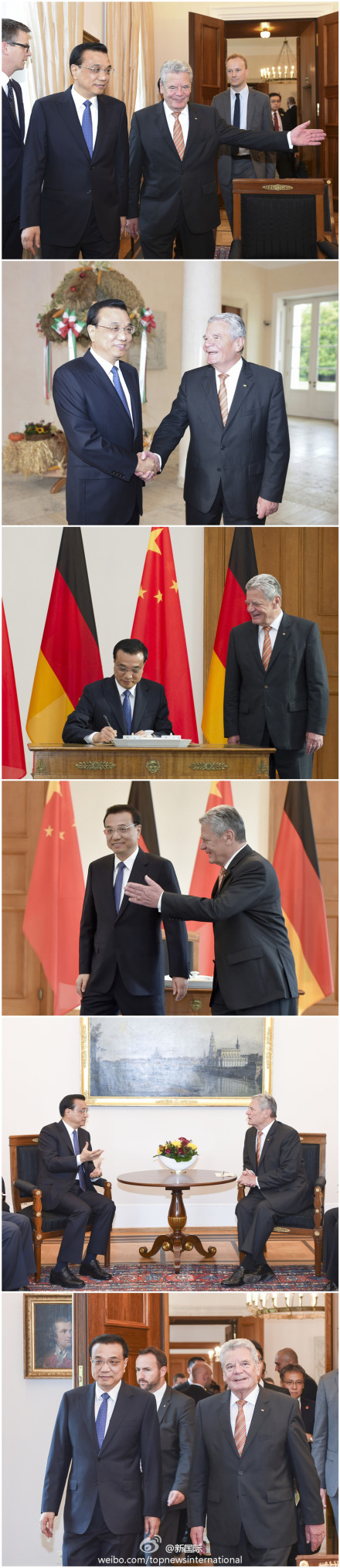 ????新華網(wǎng)北京10月10日電 據(jù)新華社“新國際”微博報(bào)道,10月10日上午,國務(wù)院總理李克強(qiáng)在柏林會見德國總統(tǒng)高克。李克強(qiáng)說,在中德雙方的共同努力下,兩國合作的深度和廣度達(dá)到前所未有的水平。中方愿同德方一道,充分理解對方國情,筑牢中德友好的基石,開辟兩國全方位戰(zhàn)略伙伴關(guān)系更加美好的前景。