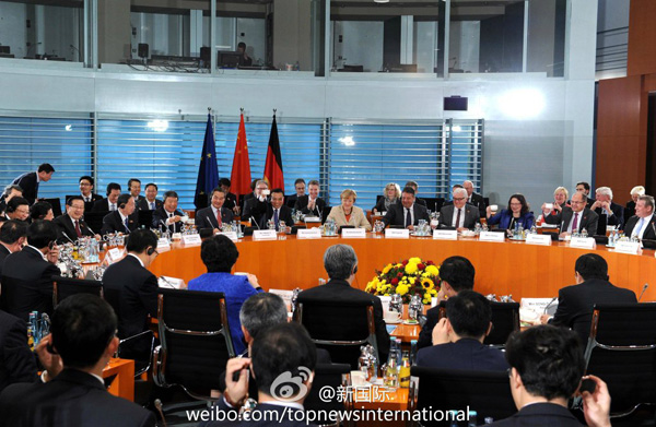 ????新華網(wǎng)北京10月10日電 據(jù)新華社“新國(guó)際”微博報(bào)道,“Happy Birthday!”在第三輪中德政府磋商會(huì)上,德國(guó)總理默克爾開場(chǎng)先向中方農(nóng)業(yè)部長(zhǎng)祝福生日!她說:雖然你不能和家人一起過,但我們會(huì)讓你過個(gè)愉快的生日。李克強(qiáng)總理提議大家舉水杯為這特別的生日送上祝福,還風(fēng)趣地說祝福農(nóng)業(yè)部長(zhǎng),意味著有保障糧食安全的基礎(chǔ)。