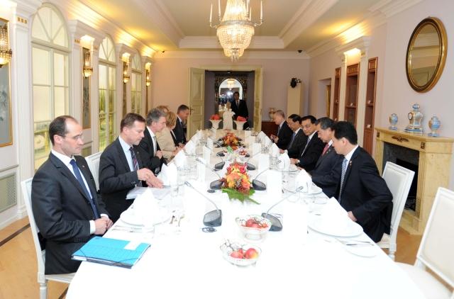 在皇家瓷器廠的博凱里尼廳里,兩國總理一起吃了今天的第二頓飯——正式歡迎宴會(huì)之外的小范圍晚宴。