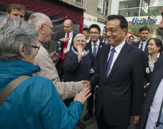 見到兩國總理到來,路邊不少民眾圍了上來,爭相與他們握手、合影。默克爾還把克強(qiáng)總理介紹給一位7、8歲的德國小女孩:“這是我的中國同事。”