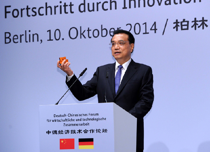 與默克爾共同出席第七屆中德經(jīng)濟(jì)技術(shù)合作論壇時,李克強在致辭最后提起,這次默克爾總理陪他逛了當(dāng)?shù)匾患页?,買了兩張明信片送給他的家人,而他也帶來一份禮物,是中國天津中德職業(yè)技術(shù)學(xué)院學(xué)生的作品,學(xué)生們希望他在公開的場合把這個禮物送給默克爾,以表達(dá)對中德制造業(yè)深度融合的期待。