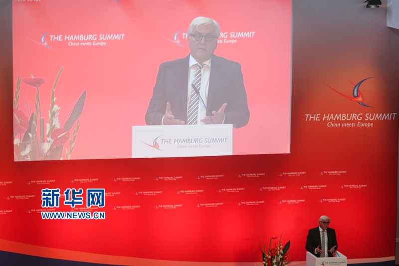 ??? 10月11日,在德國漢堡舉行的中歐論壇漢堡峰會上,德國外交部長施泰因邁爾發(fā)言。中歐論壇漢堡峰會第六屆會議11日在德國漢堡閉幕。本屆峰會以“中國與歐洲相遇”為主題。來自中歐政治、經(jīng)濟(jì)和學(xué)術(shù)界的500多位代表聚集在一起,探討中歐經(jīng)貿(mào)合作未來趨勢、中國經(jīng)濟(jì)的綠色發(fā)展等重要議題。新華社記者張帆攝