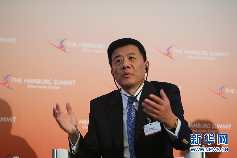 ??? 10月11日,在德國漢堡舉行的中歐論壇漢堡峰會上,中國五礦集團公司董事長周中樞發(fā)言。中歐論壇漢堡峰會第六屆會議11日在德國漢堡閉幕。本屆峰會以“中國與歐洲相遇”為主題。來自中歐政治、經(jīng)濟和學術(shù)界的500多位代表聚集在一起,探討中歐經(jīng)貿(mào)合作未來趨勢、中國經(jīng)濟的綠色發(fā)展等重要議題。新華社記者張帆攝