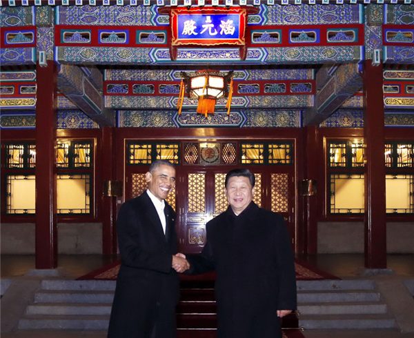 18時(shí)30分左右,習(xí)主席在中南海同美國(guó)總統(tǒng)奧巴馬舉行會(huì)晤。此時(shí)距習(xí)主席和奧巴馬身著中國(guó)式服裝在水立方出席晚宴,僅僅過去了24小時(shí)。