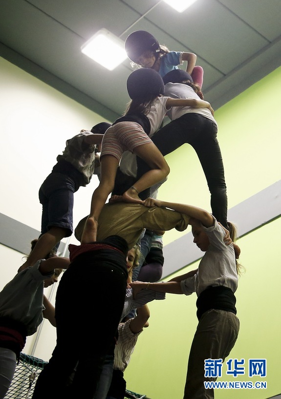 Jana在訓(xùn)練中,她就快爬到最上面了。新華社巴塞羅那分社攝影師Pau Barrena 攝