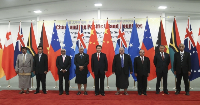 ????11月22日,國(guó)家主席習(xí)近平在楠迪同斐濟(jì)總理姆拜尼馬拉馬、密克羅尼西亞聯(lián)邦總統(tǒng)莫里、薩摩亞總理圖伊拉埃帕、巴布亞新幾內(nèi)亞總理奧尼爾、瓦努阿圖總理納圖曼、庫(kù)克群島總理普納、湯加首相圖伊瓦卡諾、紐??偫硭忍窖髰u國(guó)領(lǐng)導(dǎo)人舉行集體會(huì)晤。習(xí)近平主持會(huì)議并發(fā)表主旨講話。新華社記者 饒愛民攝