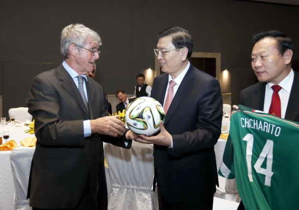 ????前中國國家足球隊主教練米盧蒂諾維奇,25日將這些禮物送給到訪墨西哥的中國全國人大常委會委員長張德江。