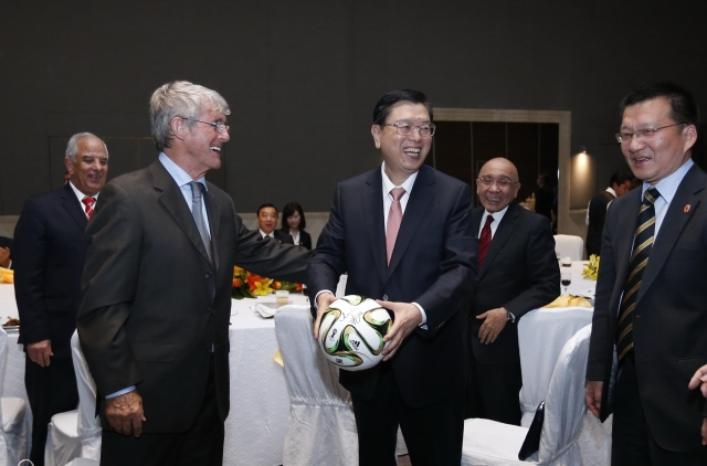 ????張德江稱贊米盧“你為中國足球做出了貢獻”。