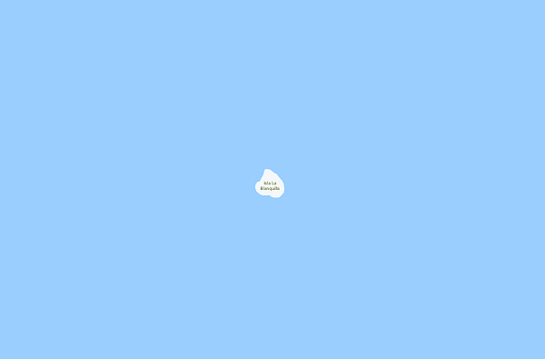 ????紅框里就是布蘭基亞(Isla La Blanquilla),藍框里是委內瑞拉首都加拉加斯。夠遠的吧?小島距離加拉加斯182公里,是著名的潛水勝地。島上覆蓋有白色沙灘,島名中的Blanquilla即來自此沙灘。岸上雖然沙灘一片雪白,但是海中卻滿布黑珊瑚。小島面積64.53平方公里,上面有仙人掌、鬣蜥、野驢和山羊。