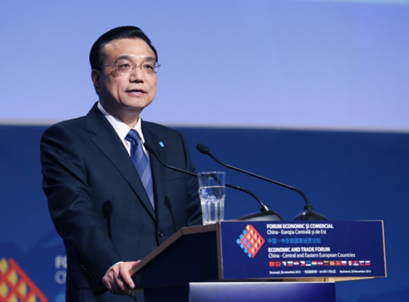 ????圖為2013年11月26日,國務院總理李克強出席第三屆中國—中東歐國家經(jīng)貿論壇并致辭。當天,李克強在布加勒斯特與羅馬尼亞等13個中東歐國家總理共同出席第三屆中國—中東歐國家經(jīng)貿論壇并致辭。 新華社記者姚大偉攝
