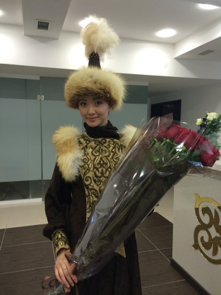 身著民族服裝的哈薩克族姑娘,給克強(qiáng)總理獻(xiàn)上了一束玫瑰花。禮賓官向記者透露,按照當(dāng)?shù)亓?xí)俗,迎接客人時(shí)一般都送顏色鮮艷的花,而且是送單數(shù)。哈薩克語中玫瑰代表著“熱情和祝福”,今天獻(xiàn)給克強(qiáng)總理的就是15支玫瑰花。