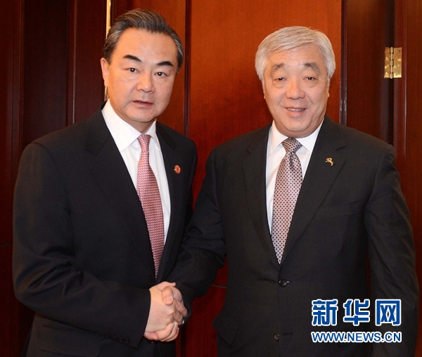 ??? 12月15日,陪同李克強總理訪問哈薩克斯坦的外交部長王毅應(yīng)約會見哈薩克斯坦外長伊德里索夫。 新華社記者 沙達(dá)提 攝