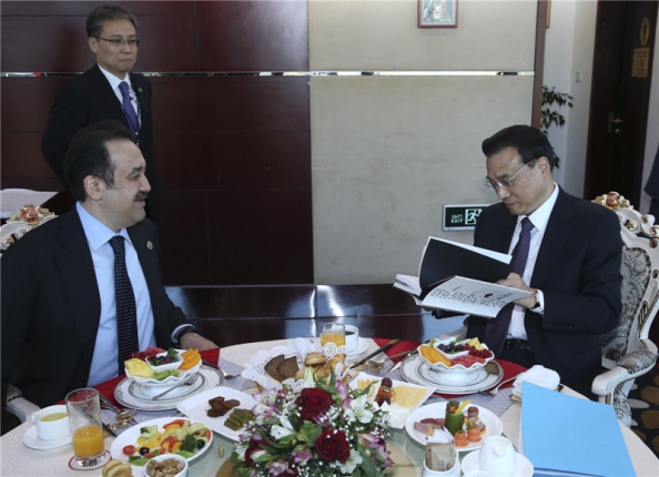 ????新華網(wǎng)北京12月16日電 據(jù)新華社“新華國際”客戶端報道,“一日之計在于晨”??藦娍偫?5日的緊張日程從一頓早飯開始。天剛蒙蒙亮,哈薩克斯坦總理馬西莫夫就來到克強總理下榻的酒店——北京大廈,邀請克強總理一起吃早餐。
