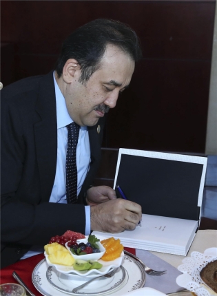 ????馬西莫夫總理則回贈給克強總理自己所著《哈薩克斯坦》一書的中譯本和一個小擺件,他還特意在書的扉頁上簽上了自己的名字。看來,這位“中國通”也希望咱們的總理更深入地了解他的國家。