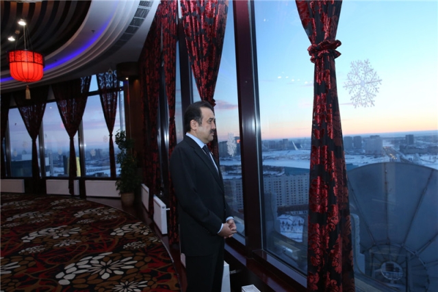 ????站在大廈23層的旋轉(zhuǎn)餐廳,阿斯塔納城盡收眼底,這里適合登高遠眺。