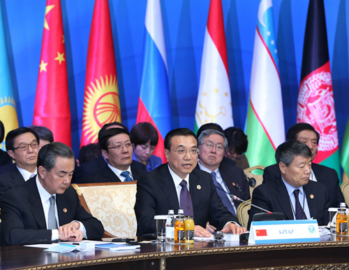 (2014年12月15日,李克強(qiáng)出席上海合作組織成員國政府首腦理事會第十三次會議。新華社記者龐興雷攝。)