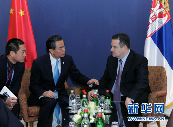 ??? 12月17日,正在陪同李克強總理訪問塞爾維亞的外交部長王毅應(yīng)約會見塞爾維亞第一副總理兼外長達契奇。 新華社記者 饒愛民 攝