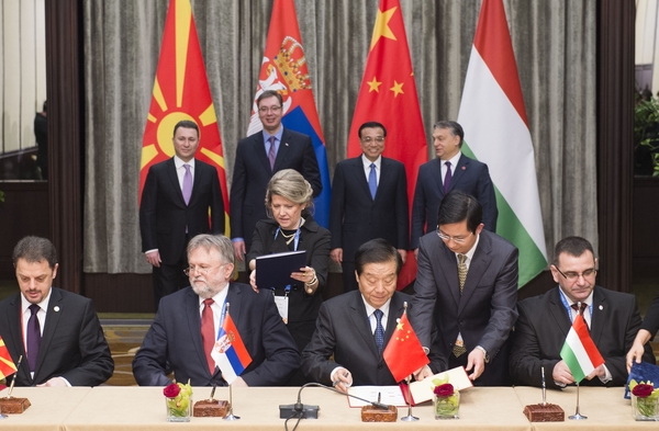 ????17日上午,中國、匈牙利、塞爾維亞、馬其頓四國總理共同見證了合作建設中歐陸??炀€北段匈塞鐵路的諒解備忘錄和通關便利化協(xié)議的簽署,為中歐陸??炀€的建設奠定了重要基礎。
