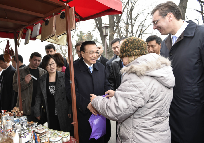 李克強(qiáng)走訪貝爾格萊德的集市。中新社 劉震 攝