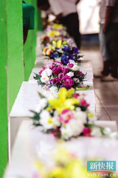 當(dāng)電視播放當(dāng)天軍人抬著2具遺體棺材的畫面時(shí),餐廳里瞬間安靜下來,沒有了刀叉的碰撞聲,人們齊齊把眼光聚集在電視上,那令人心痛悲傷的畫面:蓋著鮮花的棺材,被早在泗水守候的兩隊(duì)軍人莊嚴(yán)而沉重地慢慢抬下飛機(jī),然后輕輕地放在軍車上,在警車的開路下,徐徐地向泗水醫(yī)院駛?cè)ァ?/p>