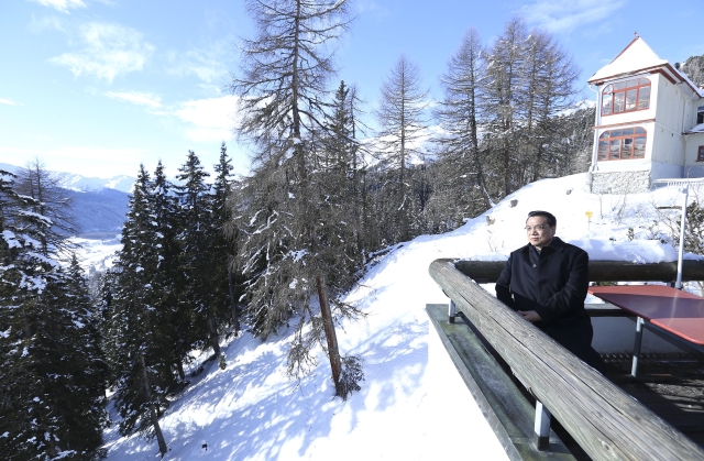 ????上了山頂,才明白咱總理為什么要來。達沃斯小鎮(zhèn)地處阿爾卑斯山脈,周圍群山環(huán)抱。海拔1800米的沙茨阿爾卑山頂視野極好,極目遠眺,藍天,白云,雪峰,蒼松,周圍靜謐得似乎只剩下積雪掉落的聲音。
