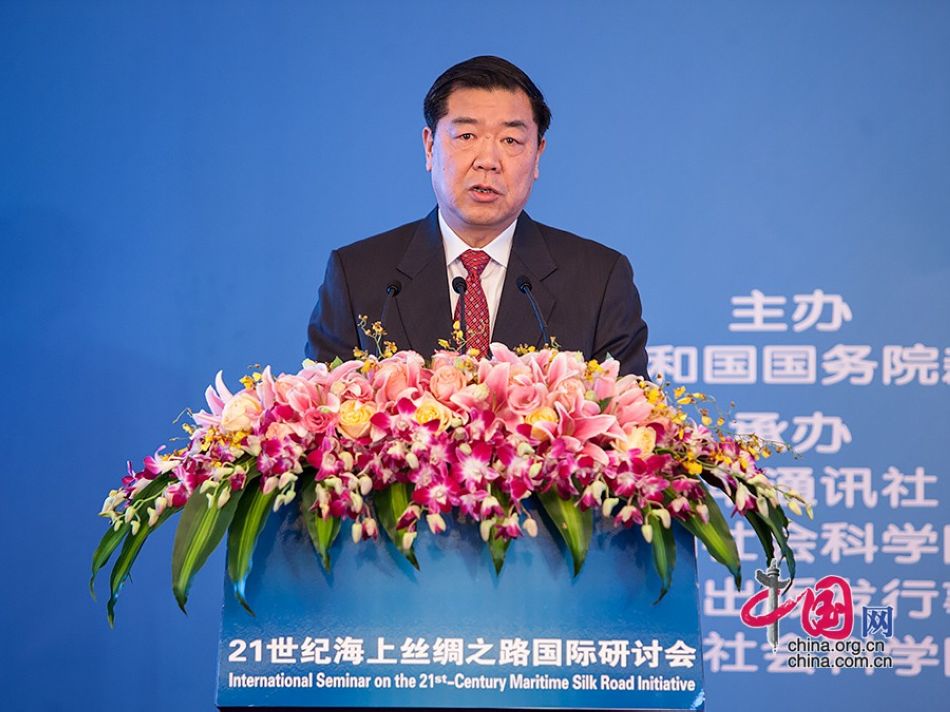 圖為中華人民共和國國家發(fā)展改革委副主任何立峰在“21世紀海上絲綢之路國際研討會”高峰論壇發(fā)表演講。中國網(wǎng)記者 鄭亮 攝