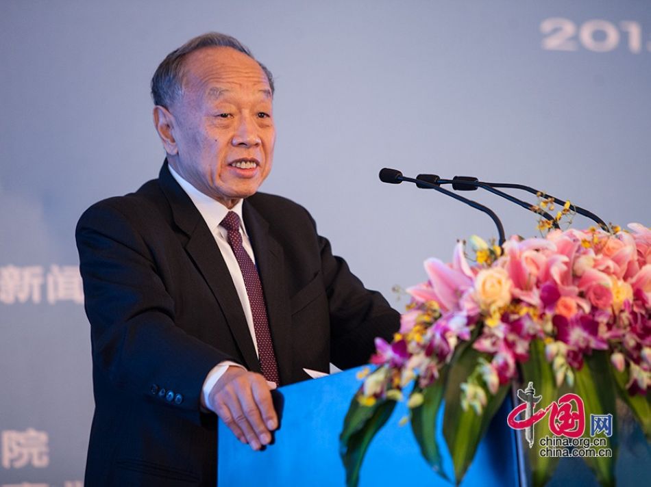 圖為中國公共外交協(xié)會(huì)會(huì)長、外交部原部長李肇星在“21世紀(jì)海上絲綢之路國際研討會(huì)”高峰論壇發(fā)表演講。中國網(wǎng)記者 鄭亮 攝