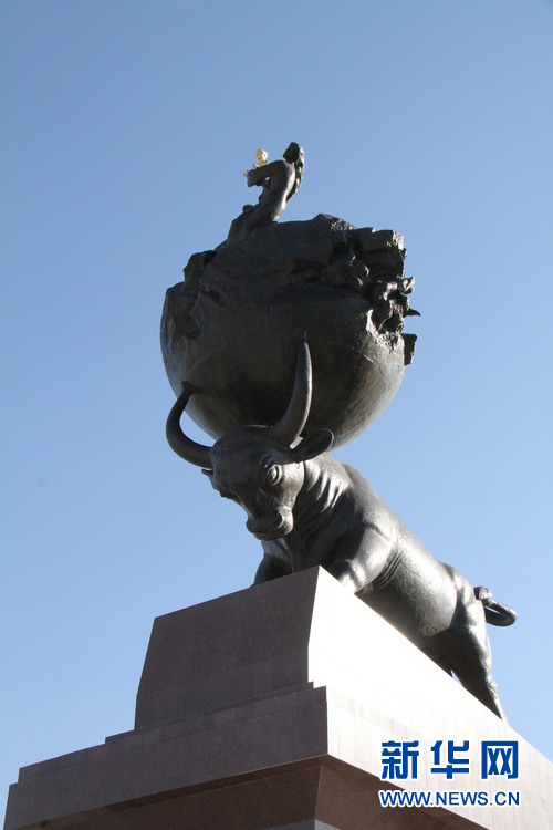 從市中心移到新雕塑群的地震紀(jì)念碑(新華網(wǎng)記者 盧敬利 攝)