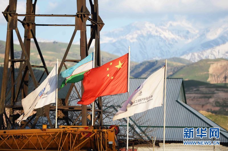 烏茲別克斯坦安格連(市)電廠煙囪施工現(xiàn)場。新華網(wǎng)發(fā) 記者沙達提 攝